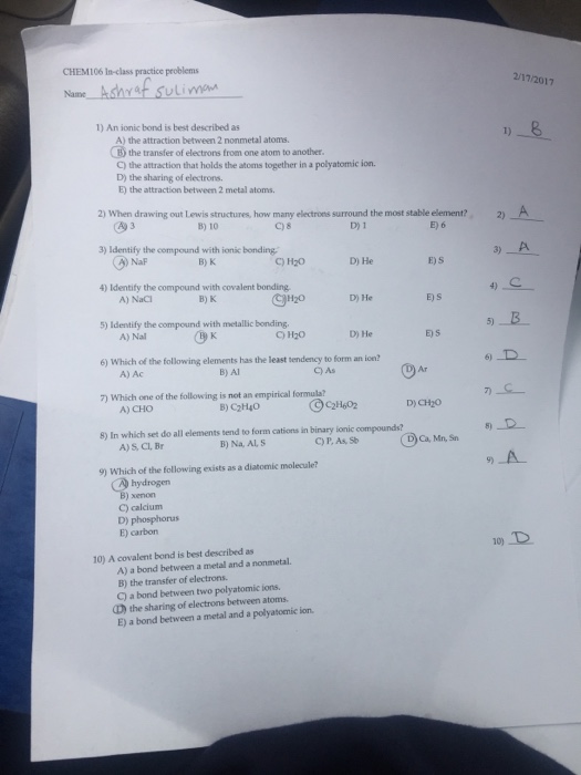 B the transfer of electrons. B a bond between two polyatomic ions. 31 a covalent bond can best be described as a two.